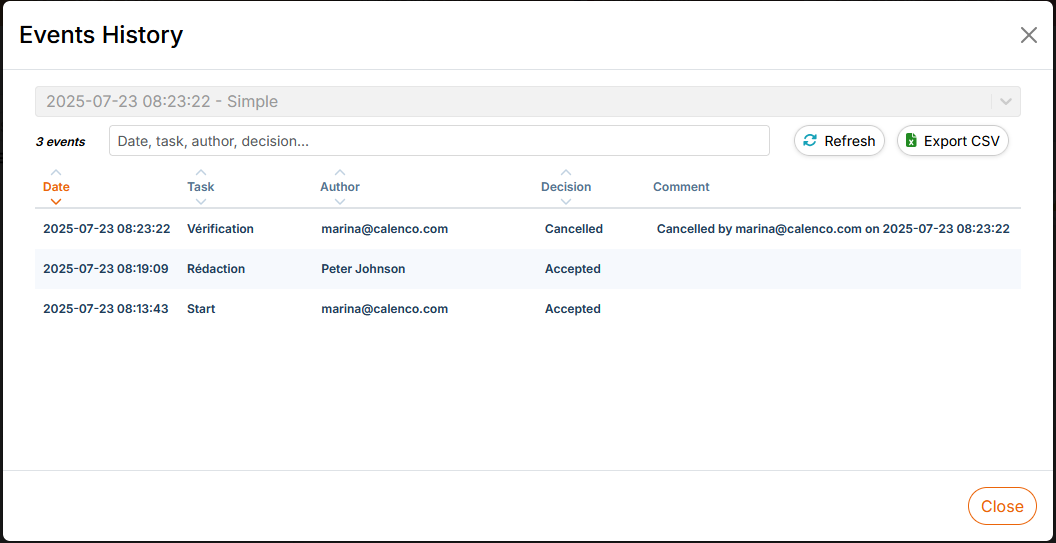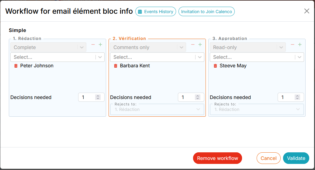 When launching a workflow or for a workflow in progress, it is possible to invite new users to join Calenco and participate in the workflow.