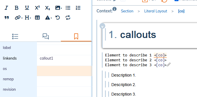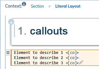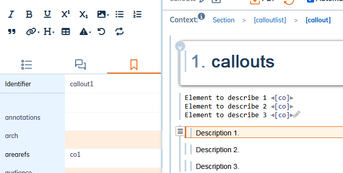 The description is wrapped in the element calloutlist made up of the callout elements.