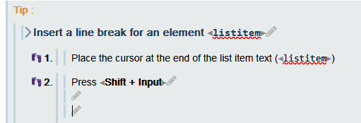 In Document, insert the literallayout via the menu → . Write text for the item you want to describe.