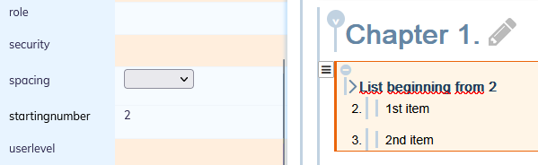 To visualize the index with which an ordered list begins in the editor. To visualize the index with which the list begins, select the ![]() |